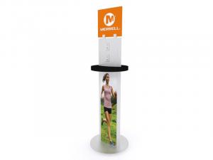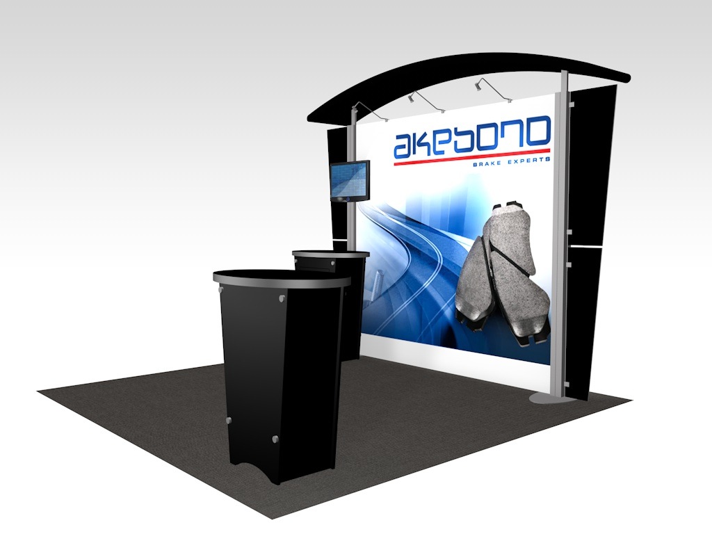 The rental exhibits gallery includes a variety of workstations with locking doors for storage, product shelves, and monitors. The arch-shape and flat canopies add an attractive design element to many rental design options. Most of the inline rental exhibits pack and ship in one crate and are easy to set up. For your peace of mind, we stage and photograph every exhibit before shipping to ensure your graphics look great and fit perfectly.