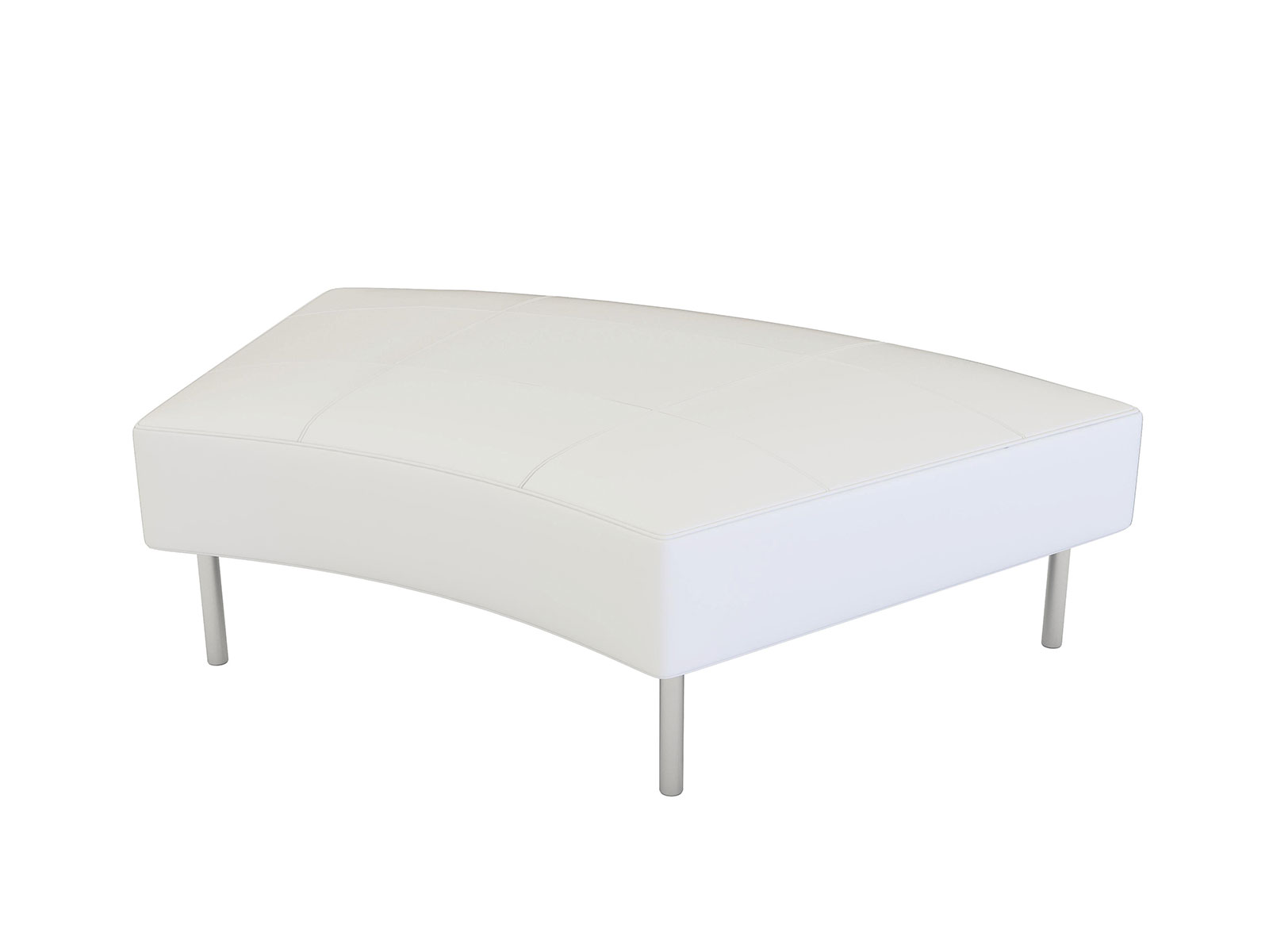 CEOT-025 | Endless Curved Ottoman -- Trade Show Rental Modular black or white vinyl curved seat/ottoman with chrome legs. Seats 2 persons comfortably. Available in White. Size = Length 60.5", Depth 37.5' , Height: 15".