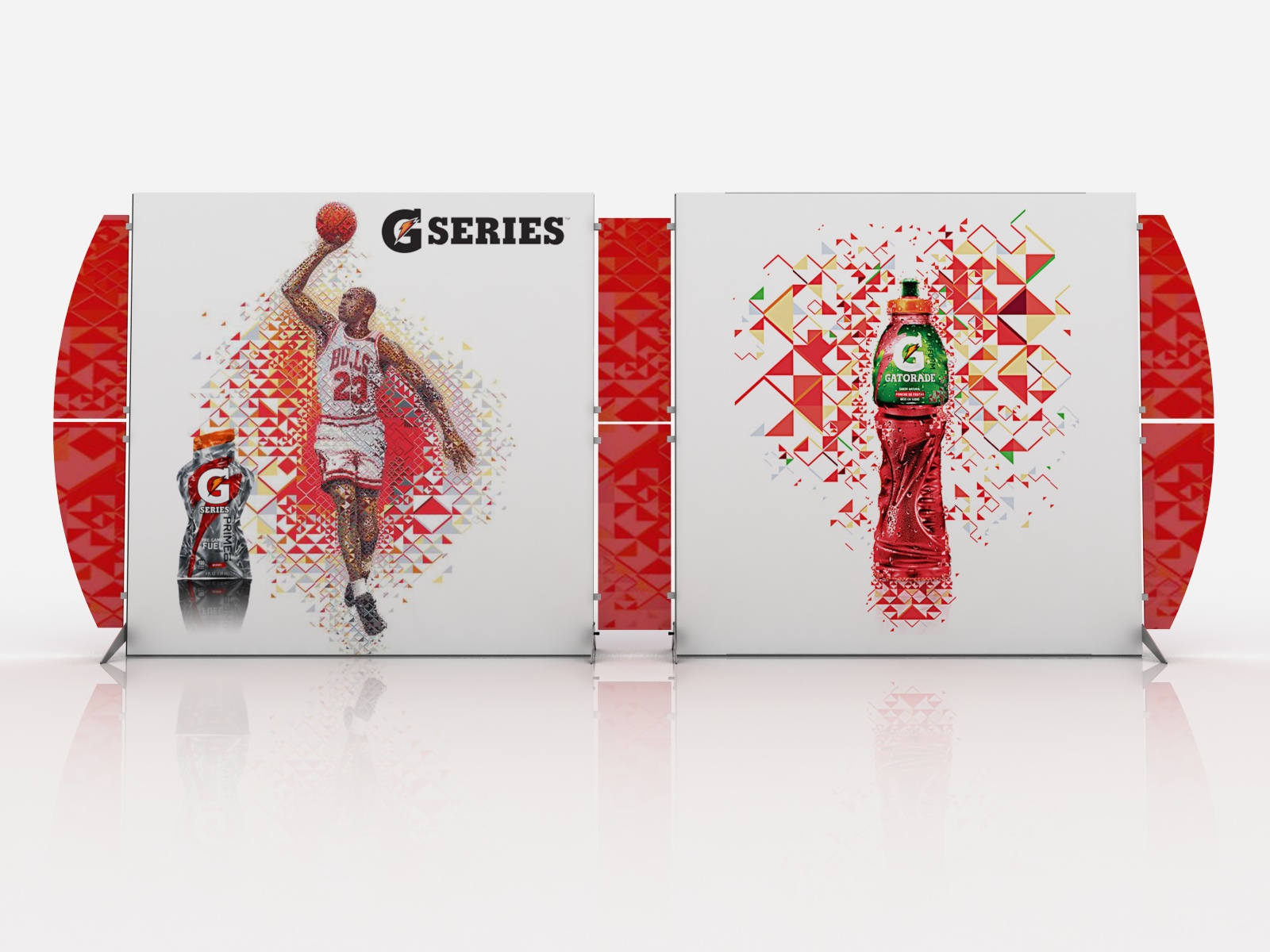 If you are considering a pop up display, then consider the SEGUE Sunrise instead. The Sunrise offers all the advantages of a pop up -- portability, ease of set-up, and a large graphic – with the benefits of a large format tension fabric graphic, aluminum frame, and no-tools assembly. Assembly takes less than 40 minutes for most kits. Best of all, the 7 ½ x 7 ½ silicone edge graphic guarantees a perfect fit every time, and the fabric graphics mean worry-free performance from show to show. You can even wash them.