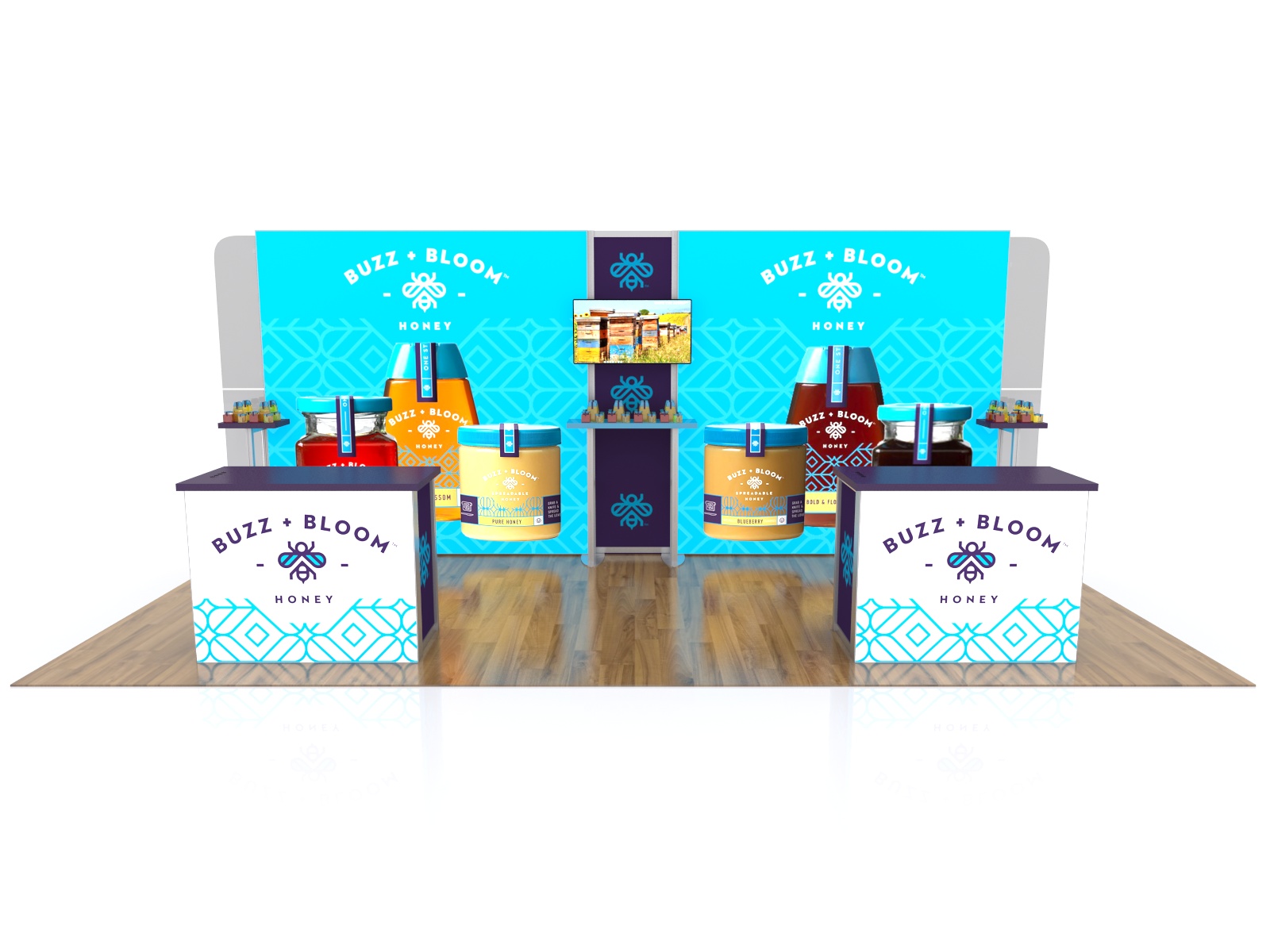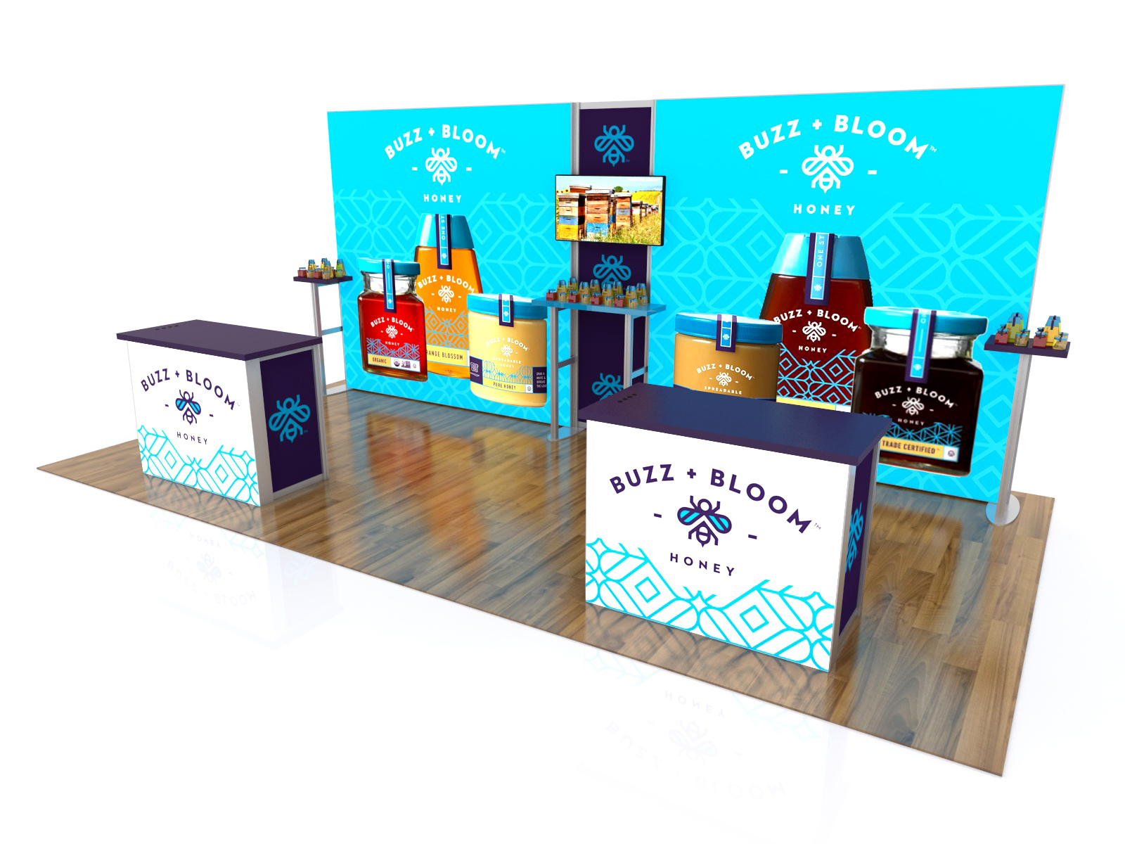 Renting an exhibit is the ideal choice in this situation. Renting is affordable, typically 30-40% of a purchase, and we have an extensive gallery of island and inline rental designs.