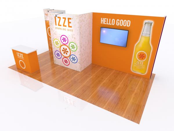 Quite often, a few custom elements added to the design can give the entire design a custom look even if it’s as simple as some colorful laminated workstations, shelves, or a reception counter. Custom laminated soffits and backlighting are also nice touches that are inexpensive and well worth the investment. As a bonus, if you re-rent the same exhibit, your second rental will most likely be less expensive, since your first rental covered the cost of those custom components.
