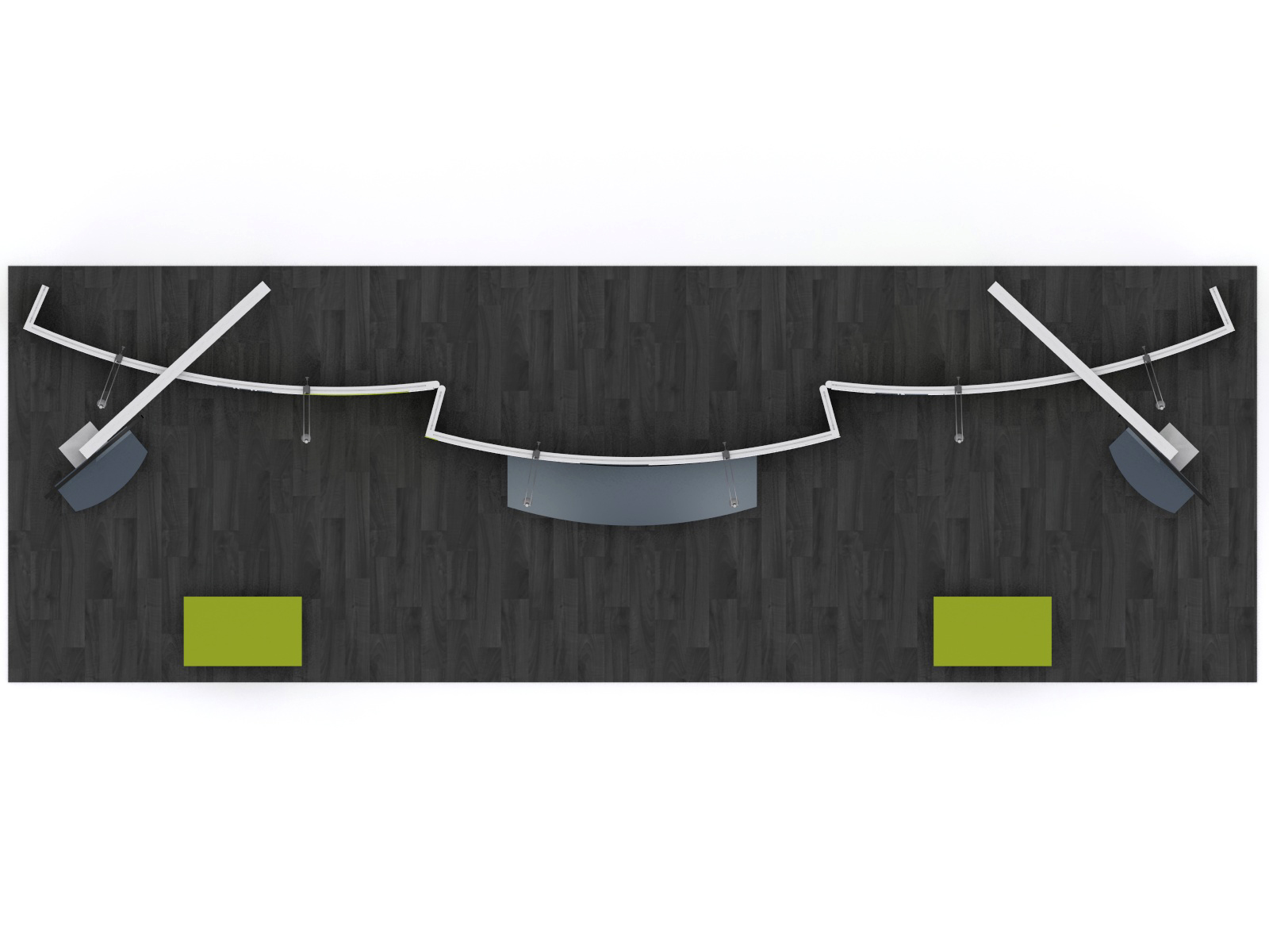 The goal of a SEGUE design, unlike other hybrid designs, is to minimize the appearance of aluminum extrusion. In most SEGUE designs, you see far less aluminum extrusion than if the display was built using traditional alumunum profiles. Good examples of SEGUE designs include: