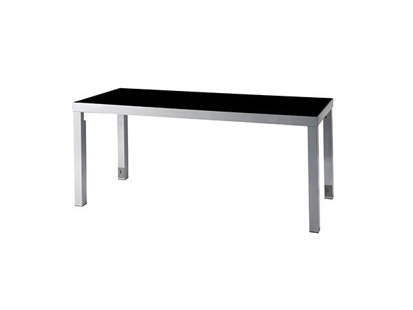 CECT-035 | Ventura Communal Cafe Table (Black) -- Trade Show Rental FurnitureLaminate top with silver powder-coated legs in black, white and maple. No charging ports. Dims: 72.25" L x 26.25" D x 30" H