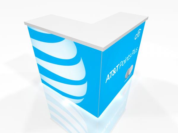 Quite often, a few custom elements added to the design can give the entire design a custom look even if it’s as simple as some colorful laminated workstations, shelves, or a reception counter. Custom laminated soffits and backlighting are also nice touches that are inexpensive and well worth the investment. As a bonus, if you re-rent the same exhibit, your second rental will most likely be less expensive, since your first rental covered the cost of those custom components.
