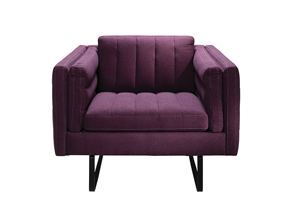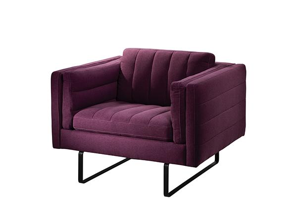 Chandler Chair-- Trade Show Furniture RentalThe mid-century plum fabric chair with channel stitching is comfortable and stylish. Size = Length 40", Depth 34.5" , Height: 31".