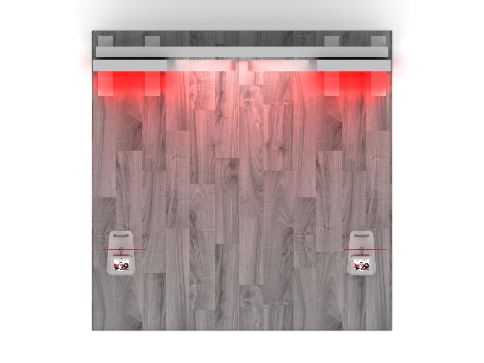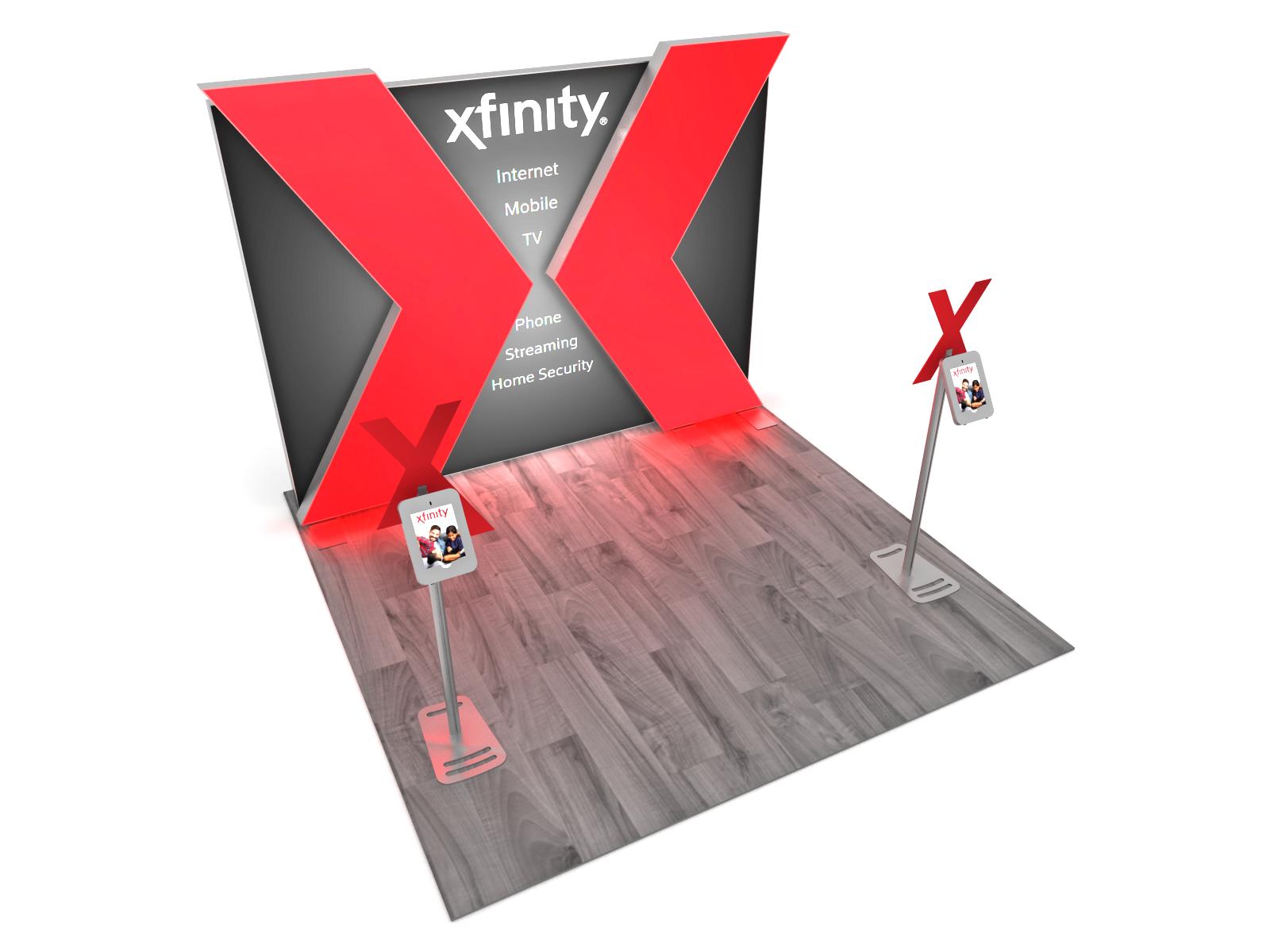 These distinctive Inline lightbox designs blend exceptionally bright LED lights, an aluminum SEG frame, and vibrant fabric graphics into a brilliant eye-catching display. The large LED lightbox spans the display and is framed with angular SEG frames. Upfront there are MOD-1368 iPad Kiosks with graphics and a beautiful MOD-1595 reception counter with backlit graphics and wireless and USB charging ports. The design includes integrated cord management. You won't believe your eyes the first time you flip the switch and see how stunning your backlit graphic can be.