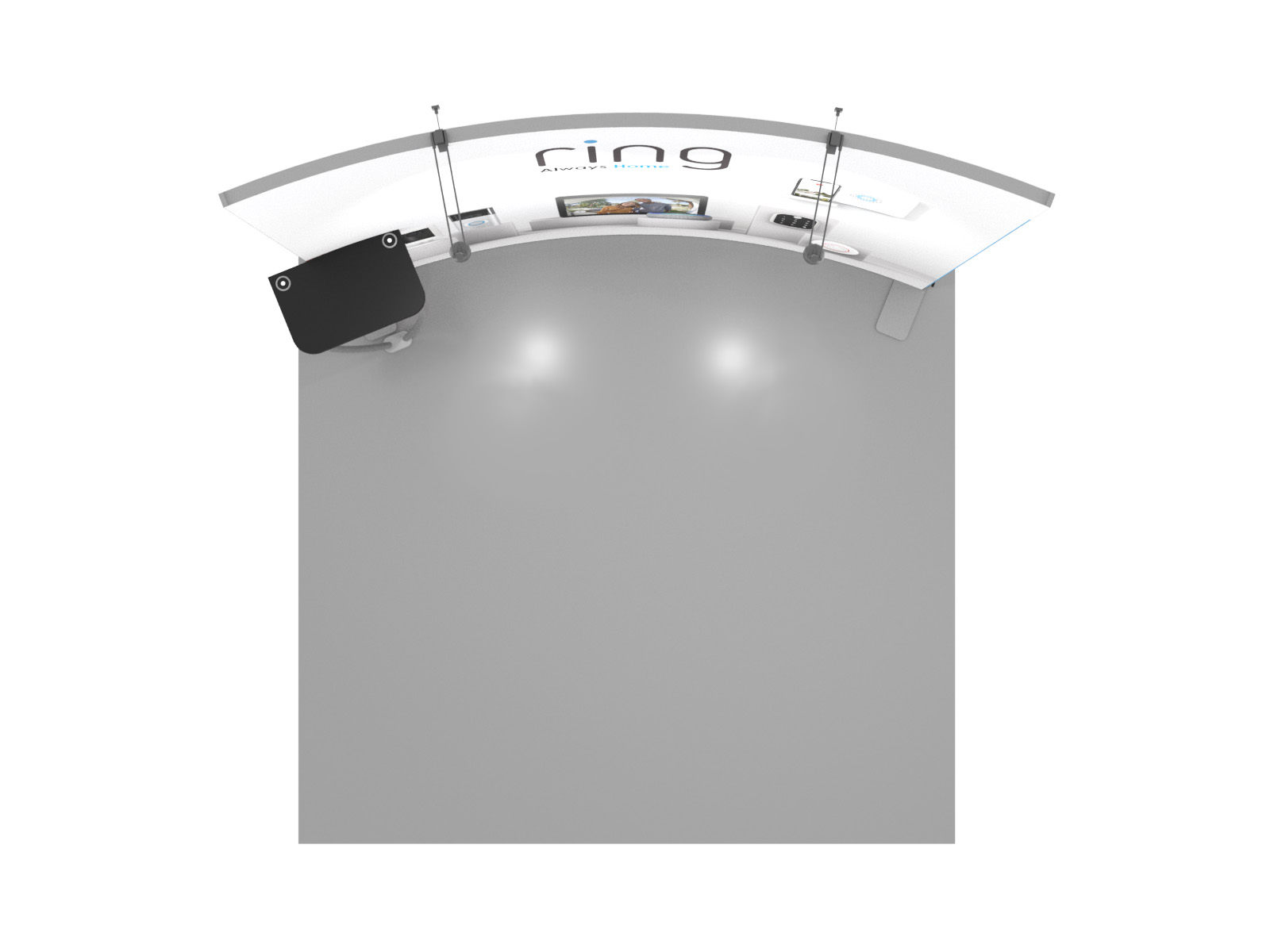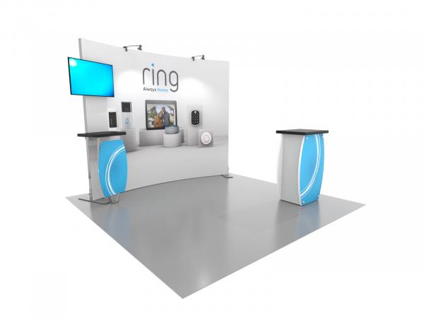 Quite often, a few custom elements added to the design can give the entire design a custom look even if it’s as simple as some colorful laminated workstations, shelves, or a reception counter. Custom laminated soffits and backlighting are also nice touches that are inexpensive and well worth the investment. As a bonus, if you re-rent the same exhibit, your second rental will most likely be less expensive, since your first rental covered the cost of those custom components.