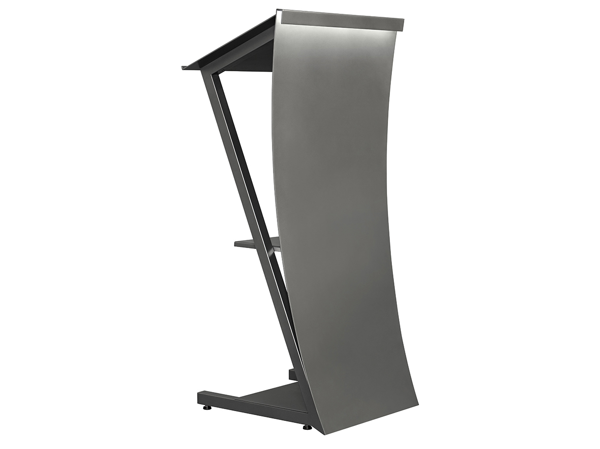 Metal Lectern (CEAC-010) -- Trade Show Rental Sophisticated and Durable Grey Metal Lectern. Dims:  23.5" L x 19.3" D x 47" H