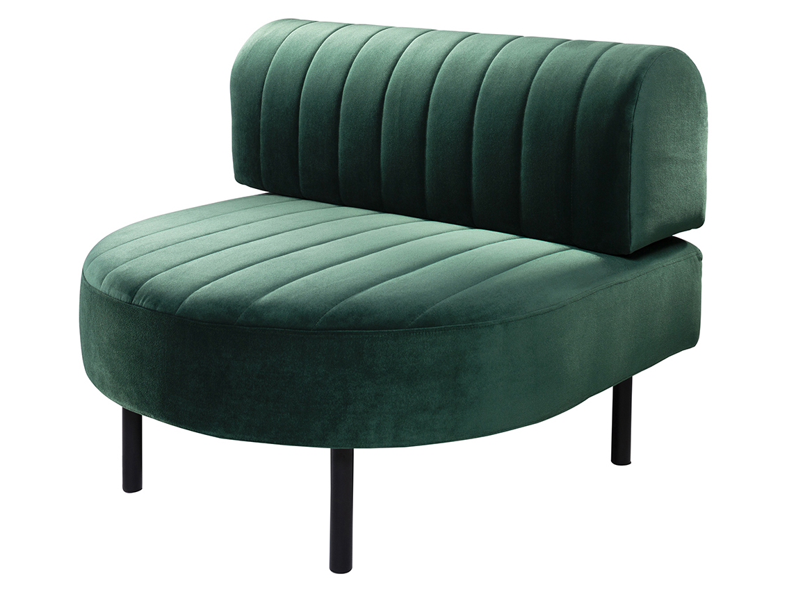 Endless Half-Round Low Back Chair -- Trade Show Furniture RentalThis retro-vibe, green velvet chair with a modern flair is compact, comfortable and stylish. Dims: 34.5" L  x 34.5" D x 27" H
