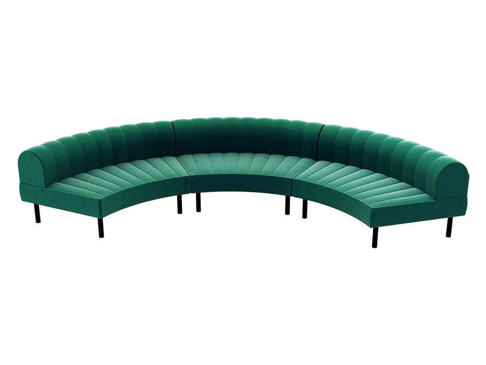This retro-vibe, green velvet square low back sofa with a modern flair is compact, comfortable and stylish. Dims: 103.5" L x 34.5" D x 27" H
