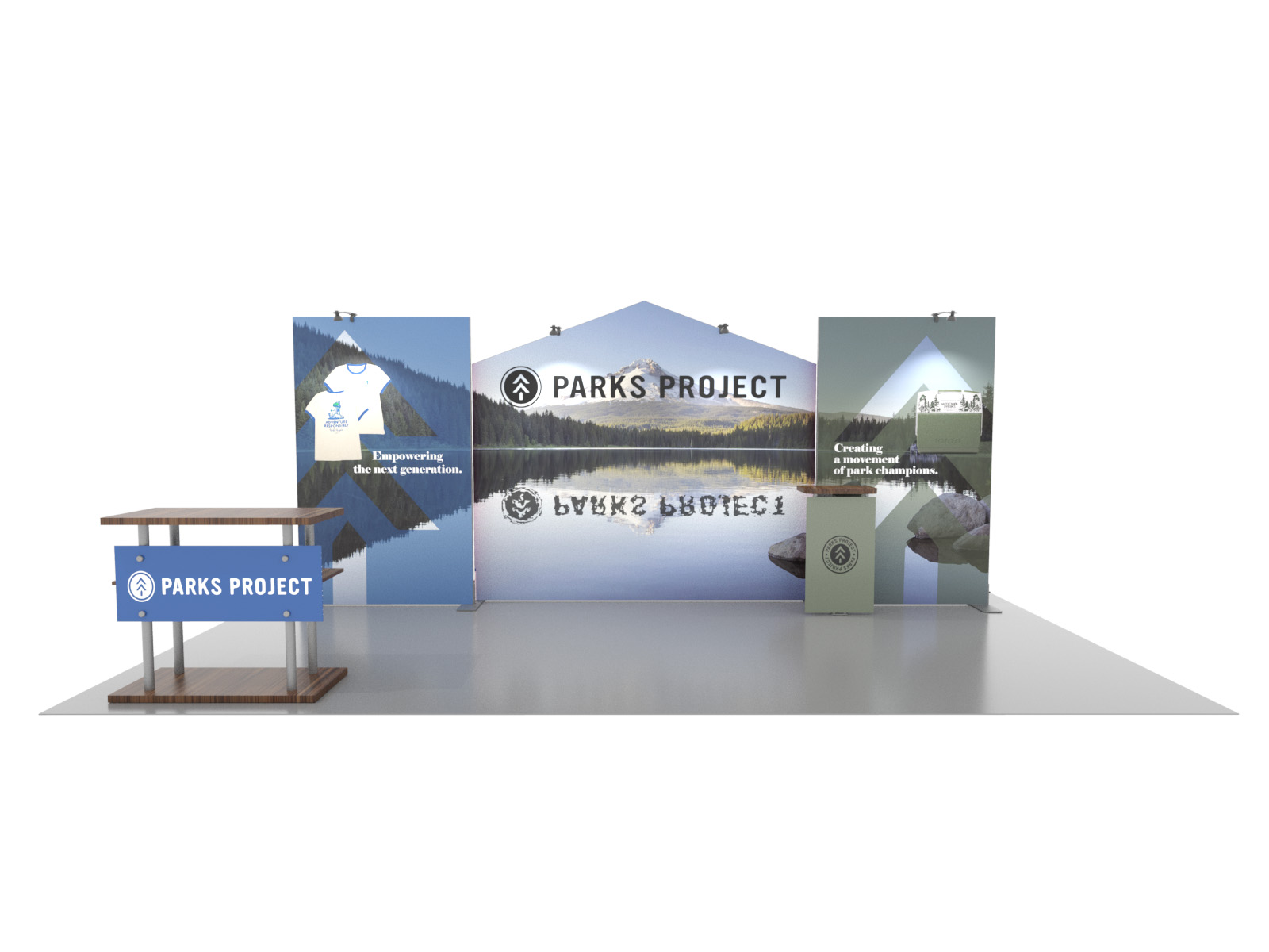 Personalize your Symphony Display with attractive counters, workstations, floating graphics, iPad clamshells, and monitor mounts. The lightweight aluminum frames are engineered for SEG dye-sublimated fabric graphics for a seamless, wrinkle-free look. Add floating graphics for additional visual layering and branding.