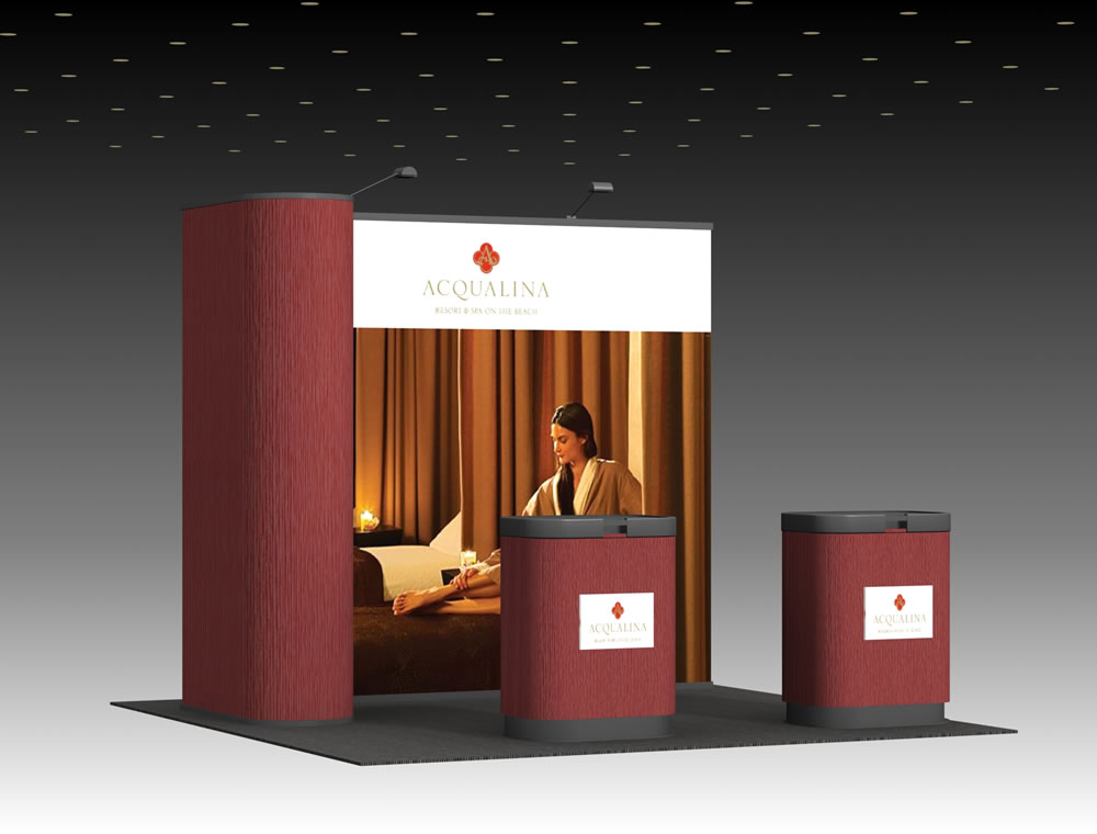 Personalize your Symphony Display with attractive counters, workstations, floating graphics, iPad clamshells, and monitor mounts. The lightweight aluminum frames are engineered for SEG dye-sublimated fabric graphics for a seamless, wrinkle-free look. Add floating graphics for additional visual layering and branding.