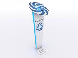 One BIG advantage of choosing a modular island exhibit is design flexibility. Even if your booth size remains the same from show to show. The VK-5176, VK-5174, and VK-5175 islands illustrate how the floorplan can change in a 30 x 30 space. Need a large closet (VK-5176) at one show but an open floorplan at another (VK-5174). How about a casual seating area (VK-5175)? All three designs are variations of a theme which include SuperNova lightboxes and a large Aero hanging sign for additional visibility. Plus, multiple genius bar counters for demos or intake meetings. Consider changing the graphics and rental furniture for even more design flexibility