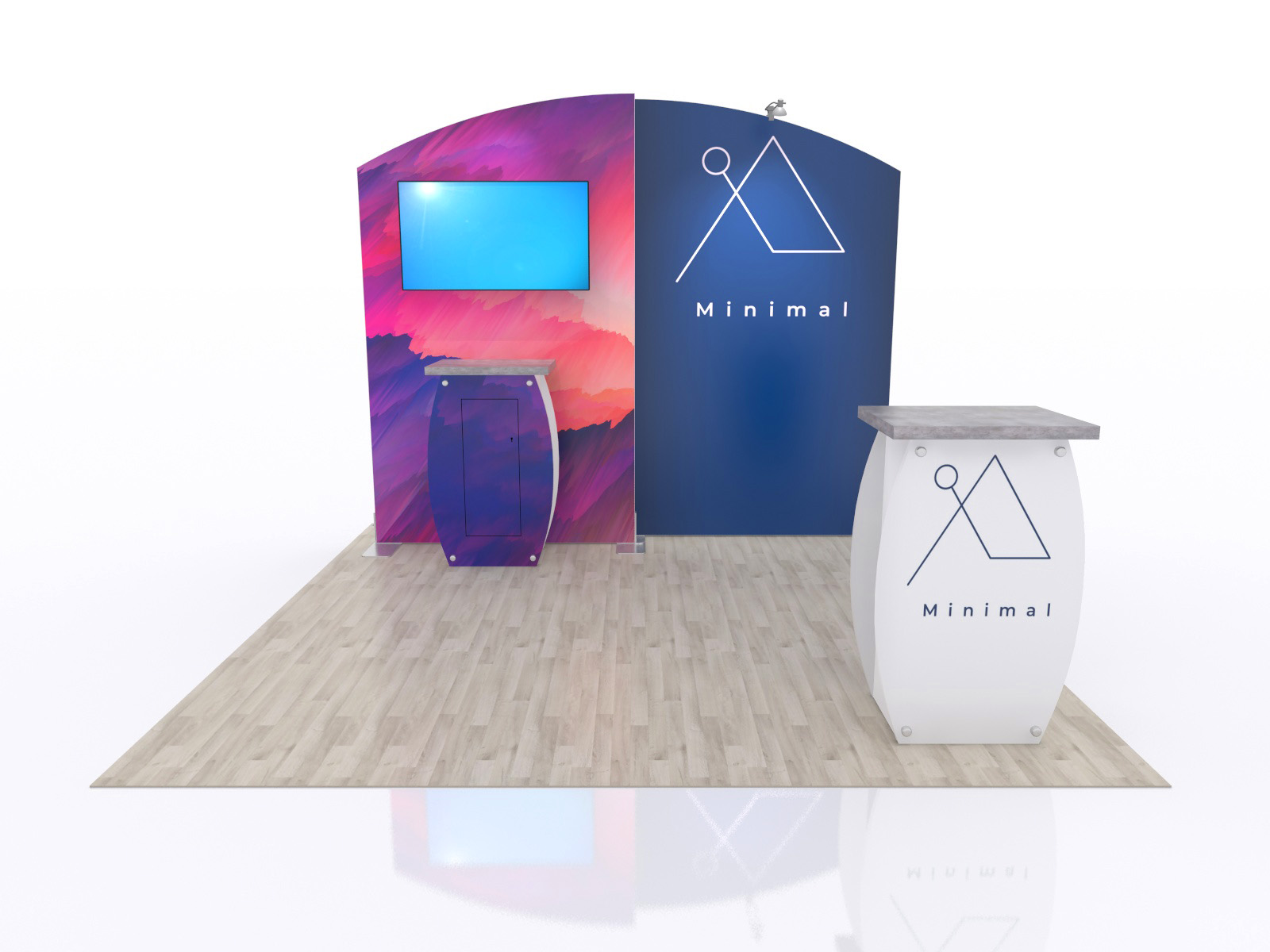 Personalize your Symphony Display with attractive counters, workstations, floating graphics, iPad clamshells, and monitor mounts. The lightweight aluminum frames are engineered for SEG dye-sublimated fabric graphics for a seamless, wrinkle-free look. Add floating graphics for additional visual layering and branding.
