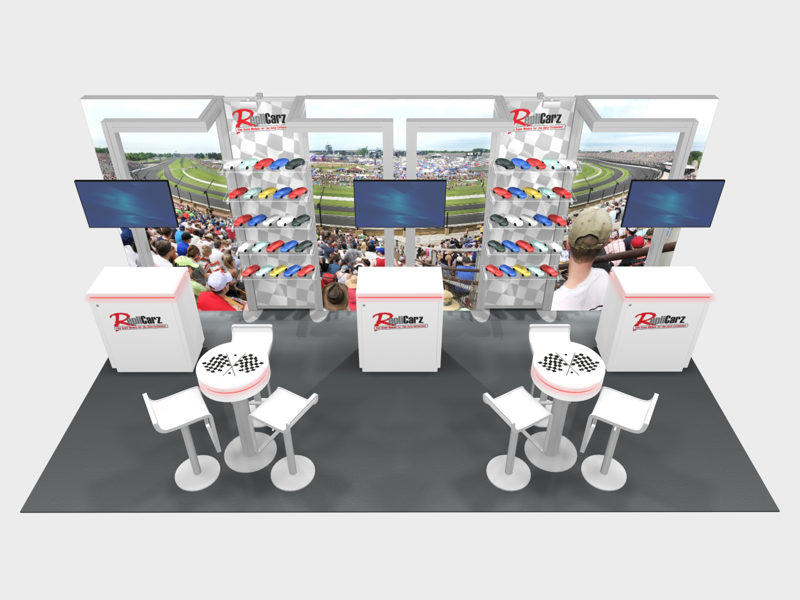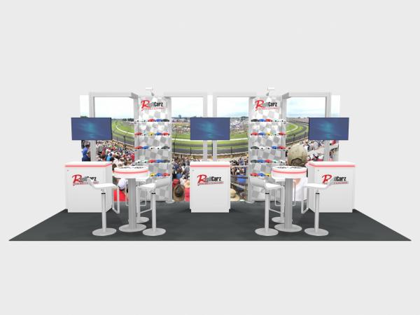 There’s an assumption that rental inclines, like 10 x 20 booths, should be simple – a few big graphics, counters, and maybe a rental table. But why? Rental inlines should include everything an exhibitor needs to be successful on the trade show floor. The RE-2129, 2130, and 2131 are great examples of displays with all “the bells and whistles.” All three include beautiful backlit fabric graphics, workstations with monitors, elegant counters with locking storage and LED accent lights, and shelves. Lots of shelves! In addition, the 2129 and 2130 have header graphics for additional branding and the 2131 substitutes counters for small bistro tables with wireless charging. Don’t settle. Get everything you need to maximize your trade show marketing.