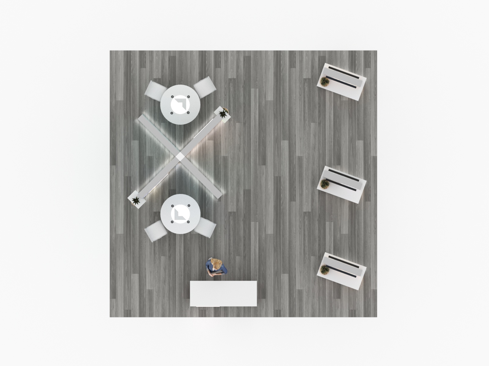 “X” marks the spot for this exciting island exhibit. The VK-5179 12 ft. X-shaped lightbox is unmistakable on the any trade show floor. The multi-sided graphic serves as an ideal space for storyboard marketing or for highlighting product categories. The design includes an upscale reception counter with backlit graphics and storage.