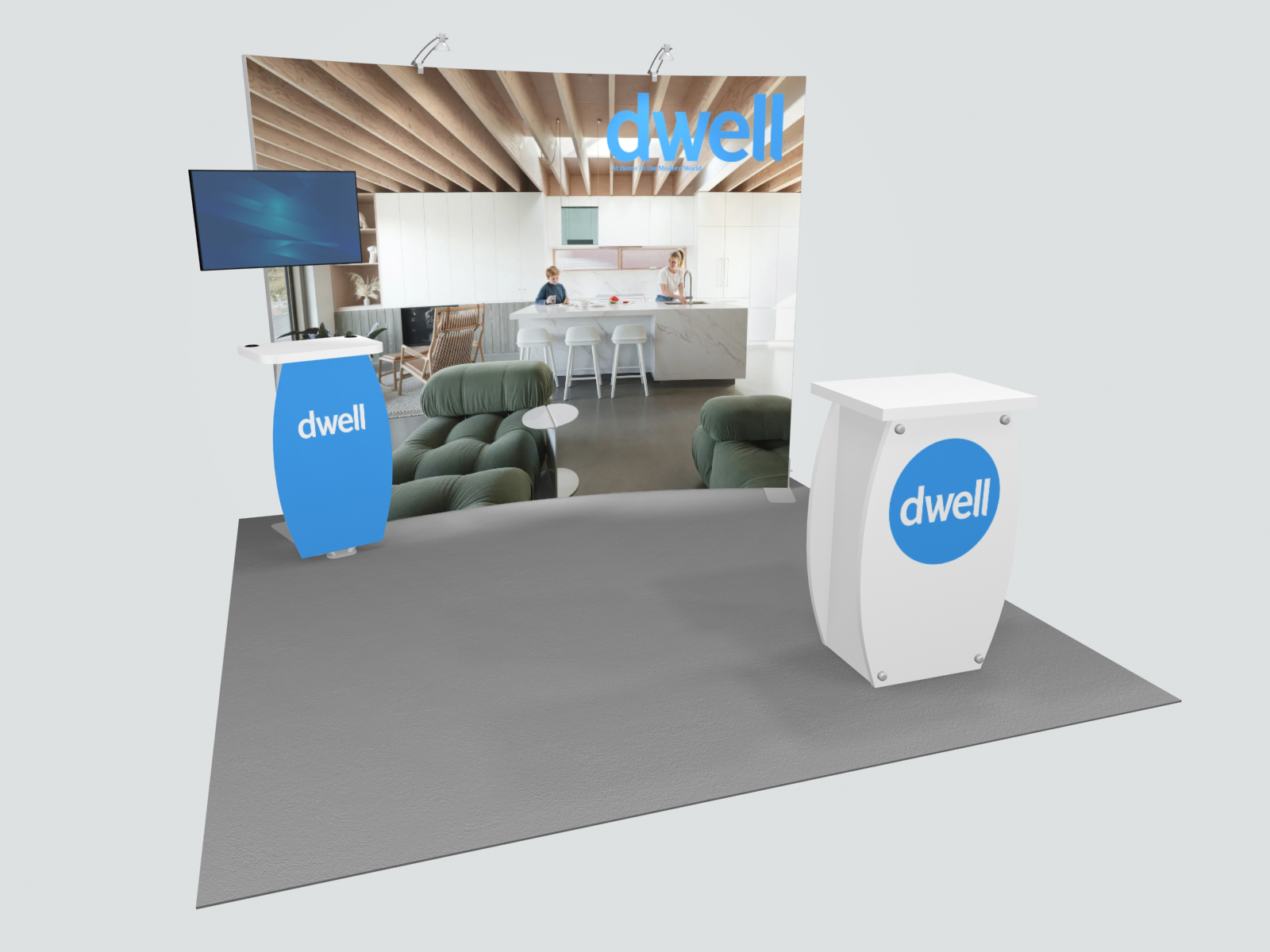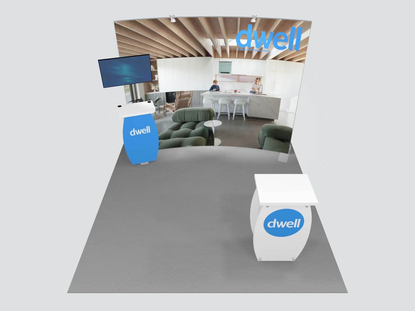 Personalize your Symphony Display with attractive counters, workstations, floating graphics, iPad clamshells, and monitor mounts. The lightweight aluminum frames are engineered for SEG dye-sublimated fabric graphics for a seamless, wrinkle-free look. Add floating graphics for additional visual layering and branding.