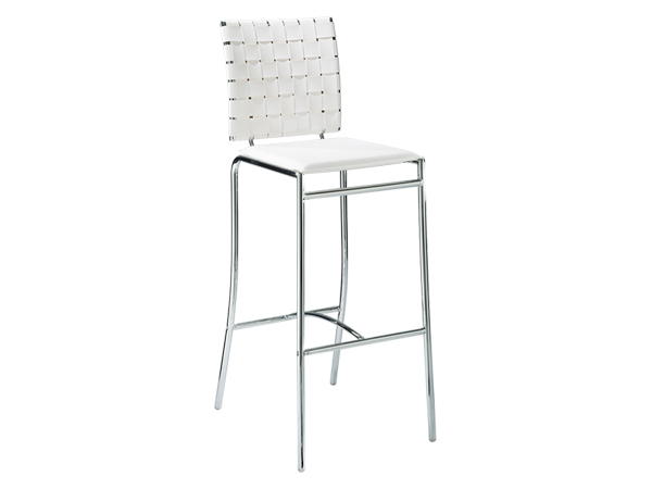 CEBS-027 | Lucent Barstool -- Trade Show Furniture RentalWhite vinyl padded barstool with comfortable woven back. Great for exhibits and lounges. Dimensions: 19"L 19"D 41"H