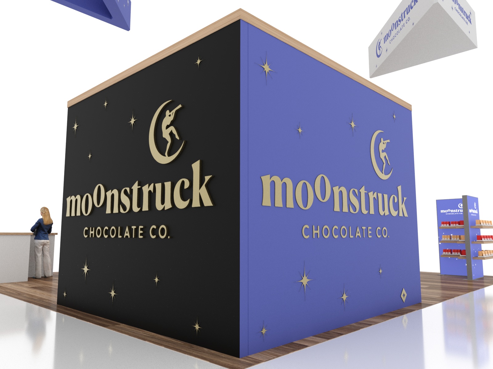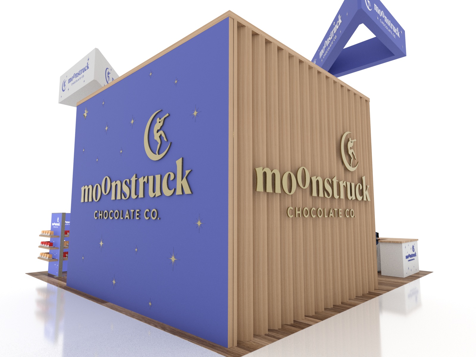 The island exhibit includes two overhead hanging signs for maximum exposure on the show floor and the subtle lightboxes are the perfect visual addition to a clean and contemporary exhibit.