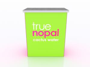 Canopies RULE as an attractive design feature in many island and peninsula exhibits. Pair that with backlit LED graphics and you've got a can't miss display on the show floor. The RE-9175, 9176, and 9177 series features multiple backlit double-sided towers connected to backlit single-sided canopies. Surrounding the towers/canopies are custom counters, genius bars, charging tables, and demo stations (depending on the configuration).