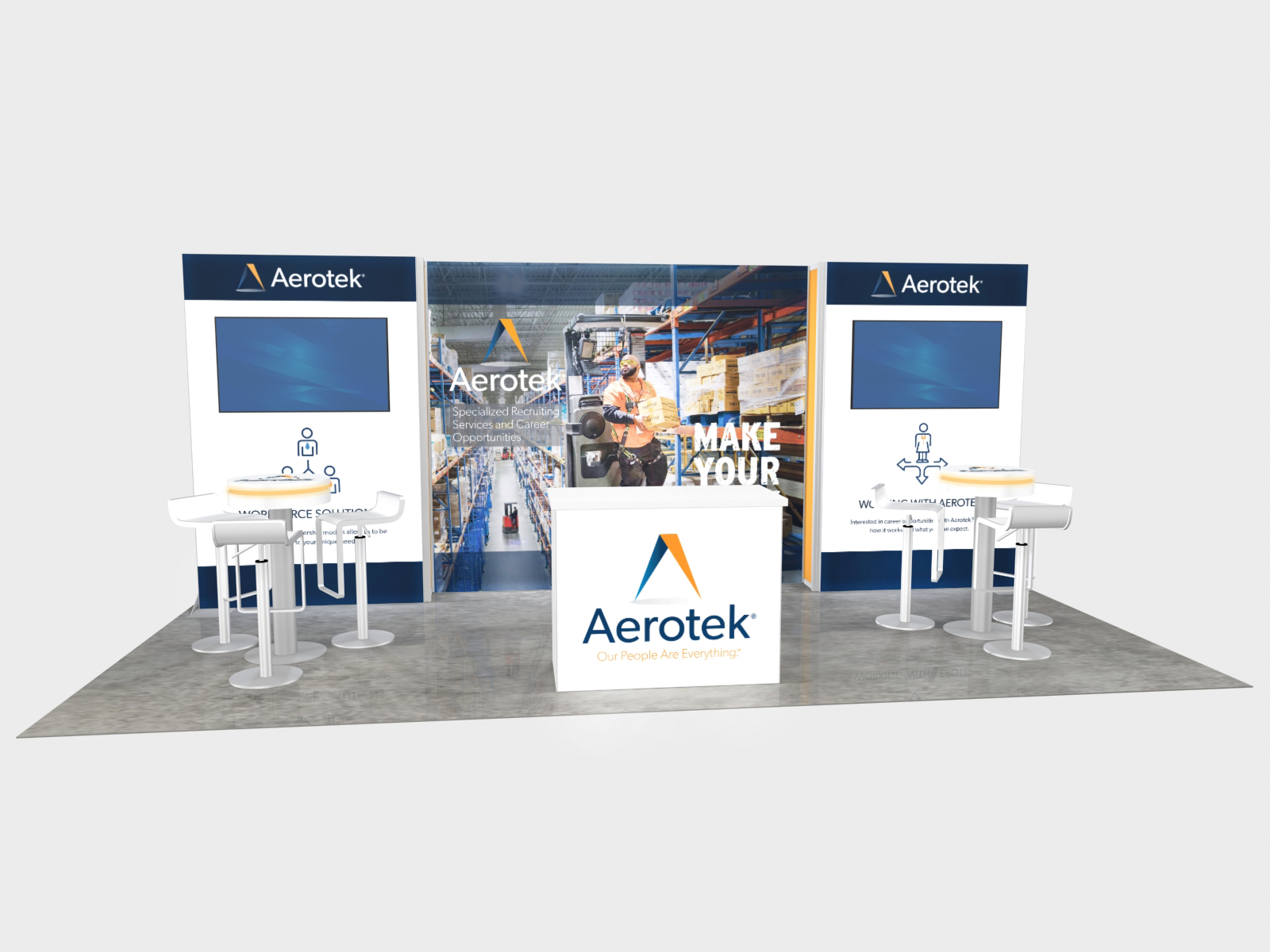 Many exhibitors blend rental components with their existing exhibit. For example, your exhibit may include the main structure, like a tower and a conference room. Renting the workstations, kiosks, or other accessories will allow you to mix and match components depending on your show requirements. In addition, it allows you to “test-drive” components to see if there’s a long-term need.