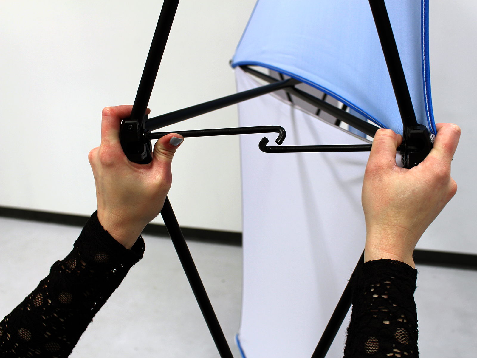 Self-locking frames are fantastic when you have a rollable mural graphic or fabric panel with stiffener hardware. But when it comes to fabric pop-ups, steer clear of a self-locking pop up.