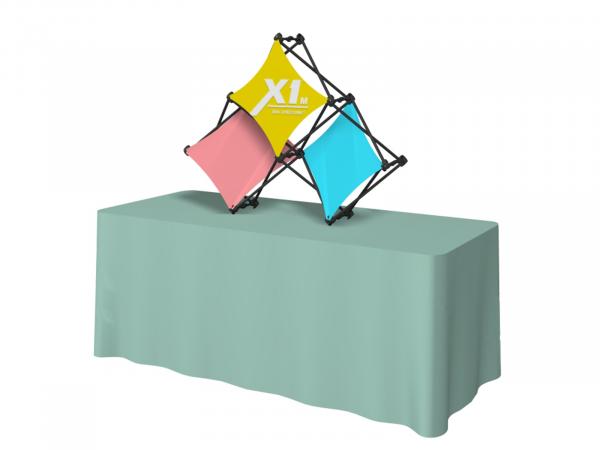 X1 8 ft. -- 3 Quad A Fabric Table Top Pop-Up DisplayThe X1m Display is a versatile no tools stretch fabric pop-up display system. Available designs and custom display options bring excitement and flexibility to your exhibit. The X1m is easy to setup, ultra lightweight and portable and even easier to take down. Be off to your next appointment or relaxing while the competition is still sweating through the exhibit break down process.