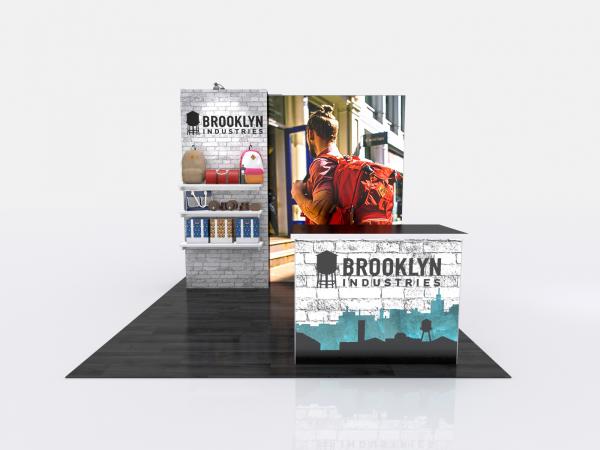 Design flexibility is critical for many exhibitors. Not only do they want to change the graphics depending on the trade show, but they also want the flexibility to add accessories and mix and match the structure. The GK-1018 and GK-1020 accomplishes all that while providing the modern exhibitor with product shelves, storage, and a dynamic backlit MOD-1700 reception counter. In addition, the Gravitee One-Step System makes it easy with a mostly tool-free assembly, including the (3) LED Lightboxes or (1) SuperNova LB. The open floorplan allows for the addition of rental furniture for casual conversations or informal meetings. Plus, because the Gravitee System is modular, expanding the inline into an island design couldn't be easier. For the ultimate tradeshow display, look no further than Gravitee. Flexibility. Design. Convenience.