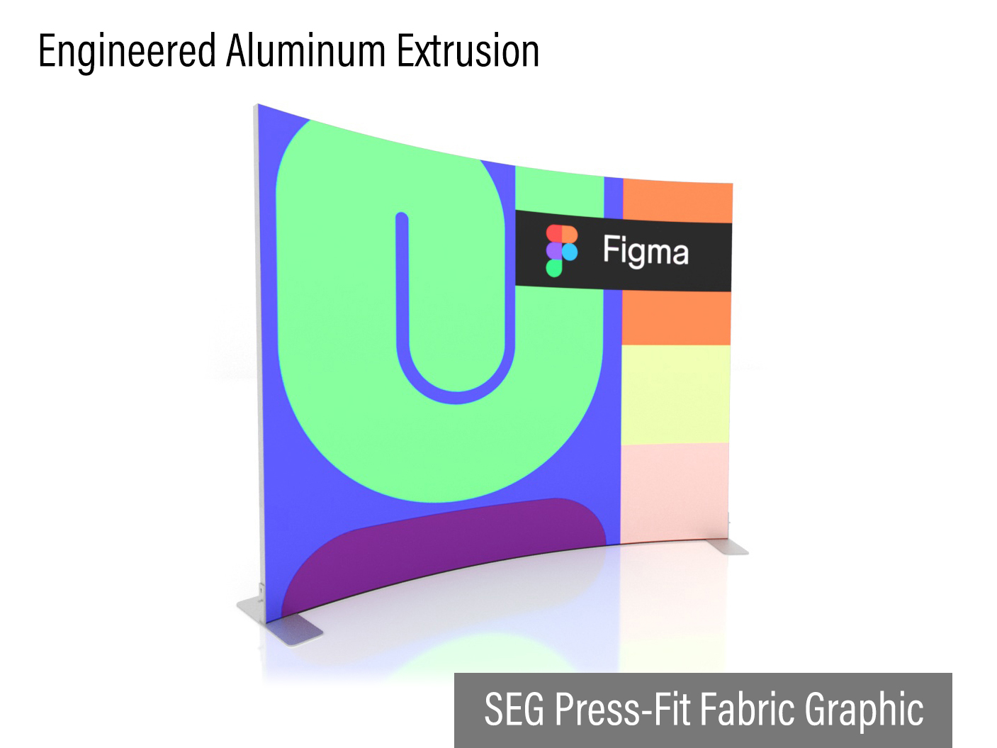 Personalize your Symphony Display with attractive counters, workstations, floating graphics, iPad clamshells, and monitor mounts. The lightweight aluminum frames are engineered for SEG dye-sublimated fabric graphics for a seamless, wrinkle-free look. Add floating graphics for additional visual layering and branding.