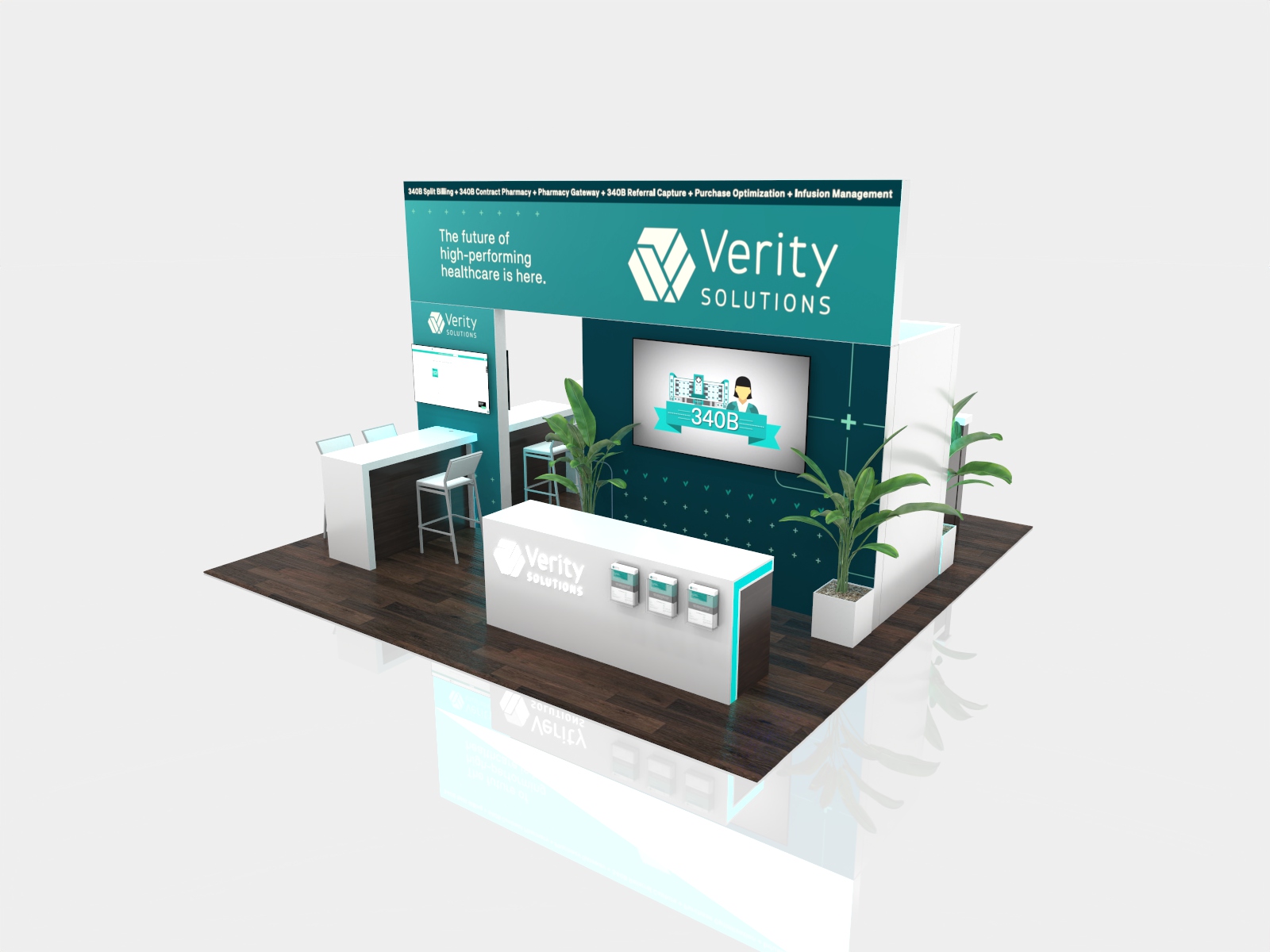 Browse through the island galleries where you'll see a wide range of options and prices. These are meant to inspire you and generate ideas. There are no cookie-cutter designs. We'll create an exhibit that matches your marketing goals and budget. Do you want to see this island with your branding? No problem. Give us a call or send us an email.