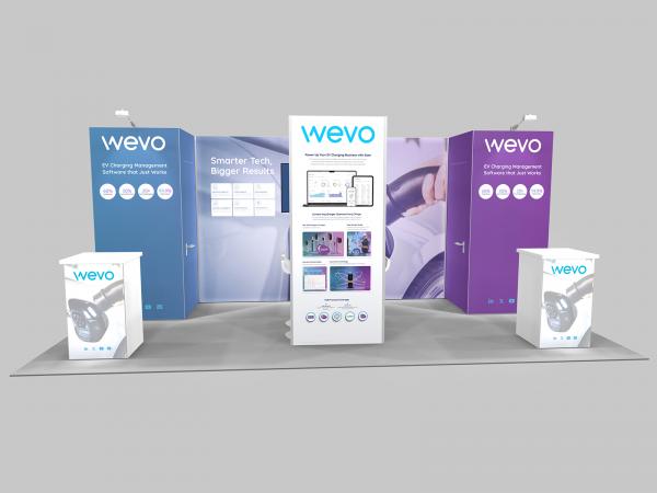 Choosing the right design depends on your goals. The RE-2161 includes (2) closets with locking storage. The RE-2160 has (3) monitor mounts for demos or sales presentations. And the RE-2159 has both a large closet and reception counter. All three an attractive arch canopy with graphics and a semi-private waterfall counter. Assembly is fast with the Gravitee Modular panels and SuperNova lightboxes (no tools) and the counter are either fully or mostly pre-assembled for easier setup.