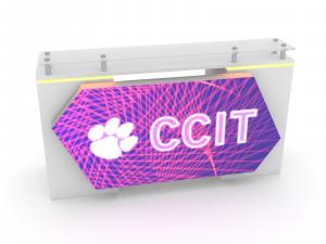 Looking for a big bang on a modest budget? Plus a sustainable design? The ECO-4094 doesn’t disappoint with (3) double-sided backlit towers, fabric graphics, ample meeting space, and an amazing reception counter with locking storage. The open format allows for multiple entries into the booth, which can often be a challenge for an island exhibit. The 12 ft. tower can support a large monitor, and there is enough space for presentations. All that and built with eco-friendly materials.