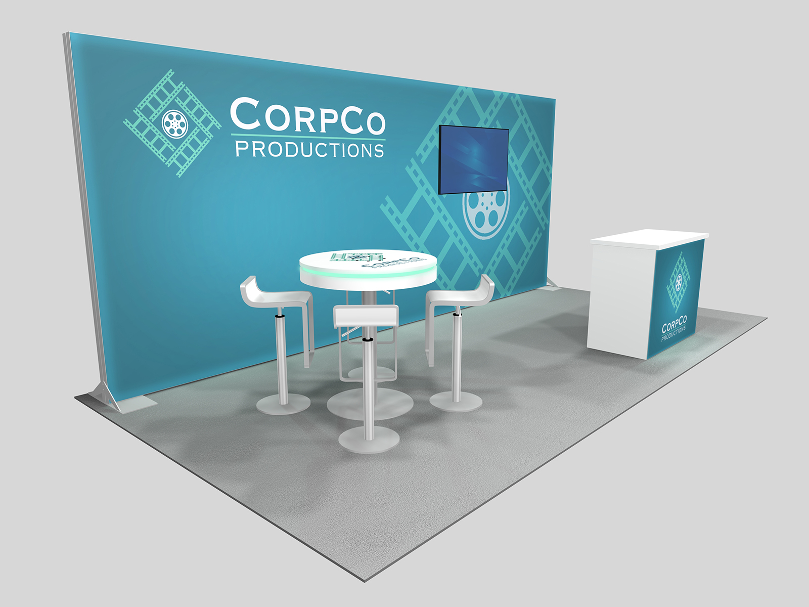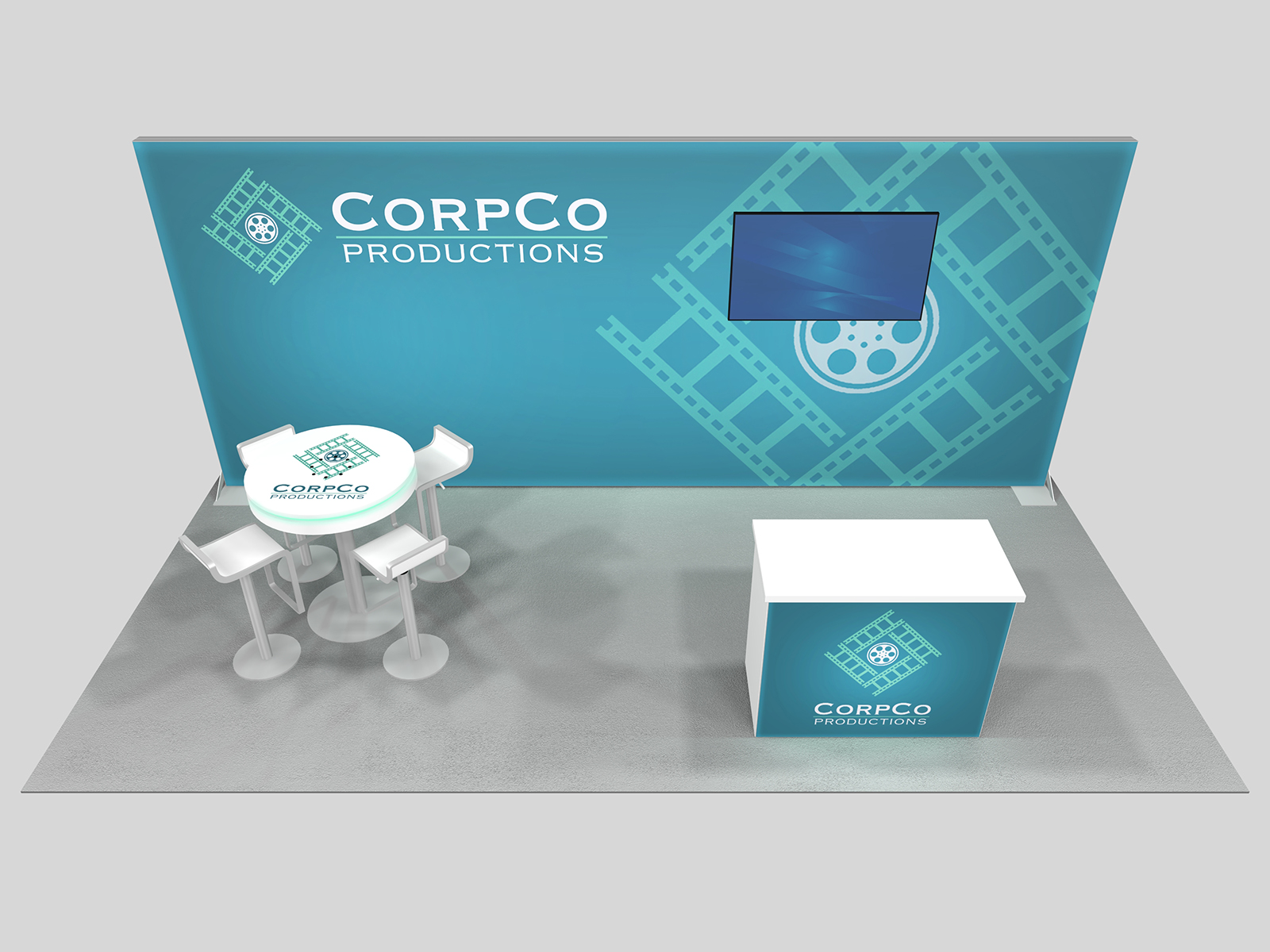 Quite often, a few custom elements added to the design can give the entire design a custom look even if it’s as simple as some colorful laminated workstations, shelves, or a reception counter. Custom laminated soffits and backlighting are also nice touches that are inexpensive and well worth the investment. As a bonus, if you re-rent the same exhibit, your second rental will most likely be less expensive, since your first rental covered the cost of those custom components.