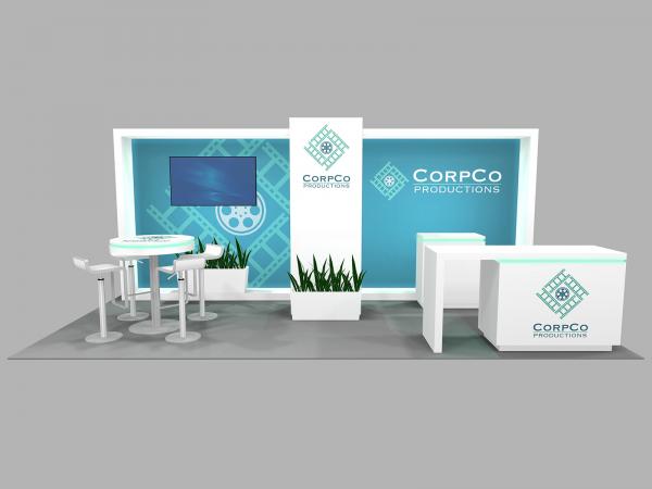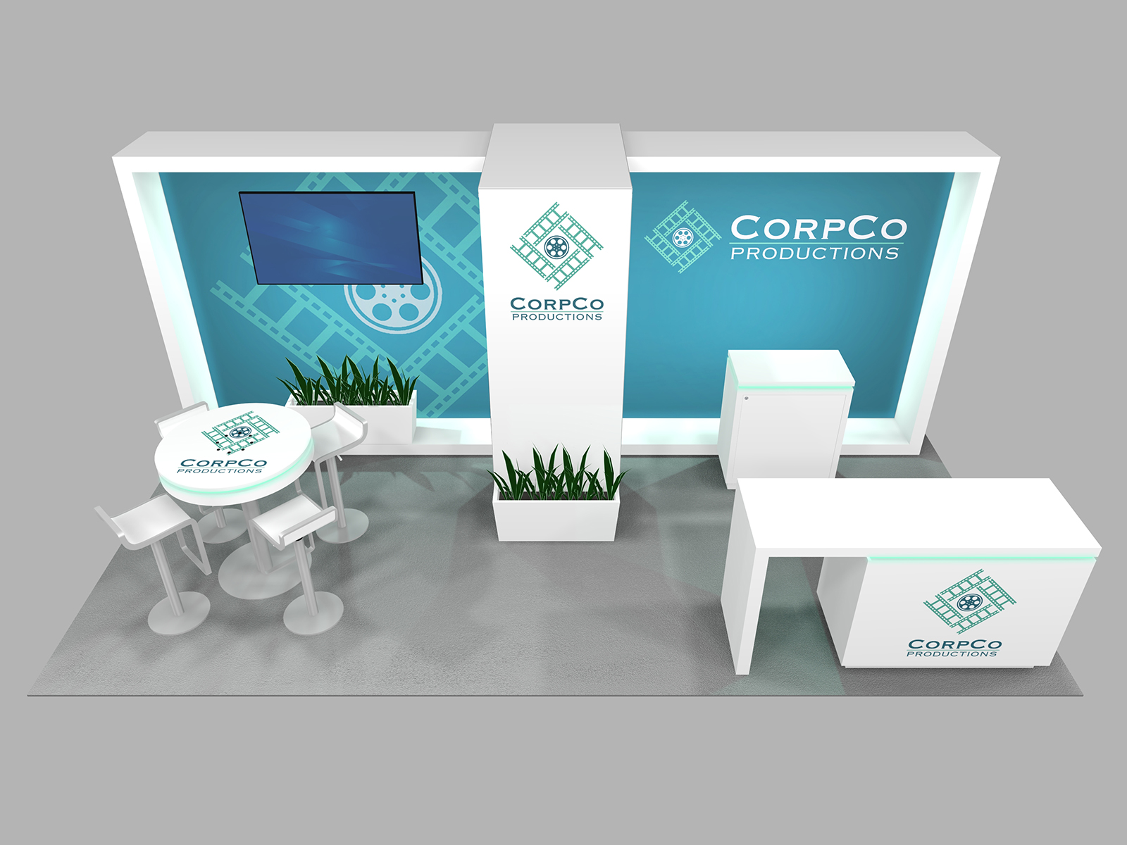 The exceptionally strong, yet lightweight frame, supports up to a 50 in. LED monitor. 10 ft. and 20 ft. lightbox versions are available with a wide assortment of attractive counters, charging solutions, and kiosks. Transform your trade show marketing with a RE-2164 rental exhibit.