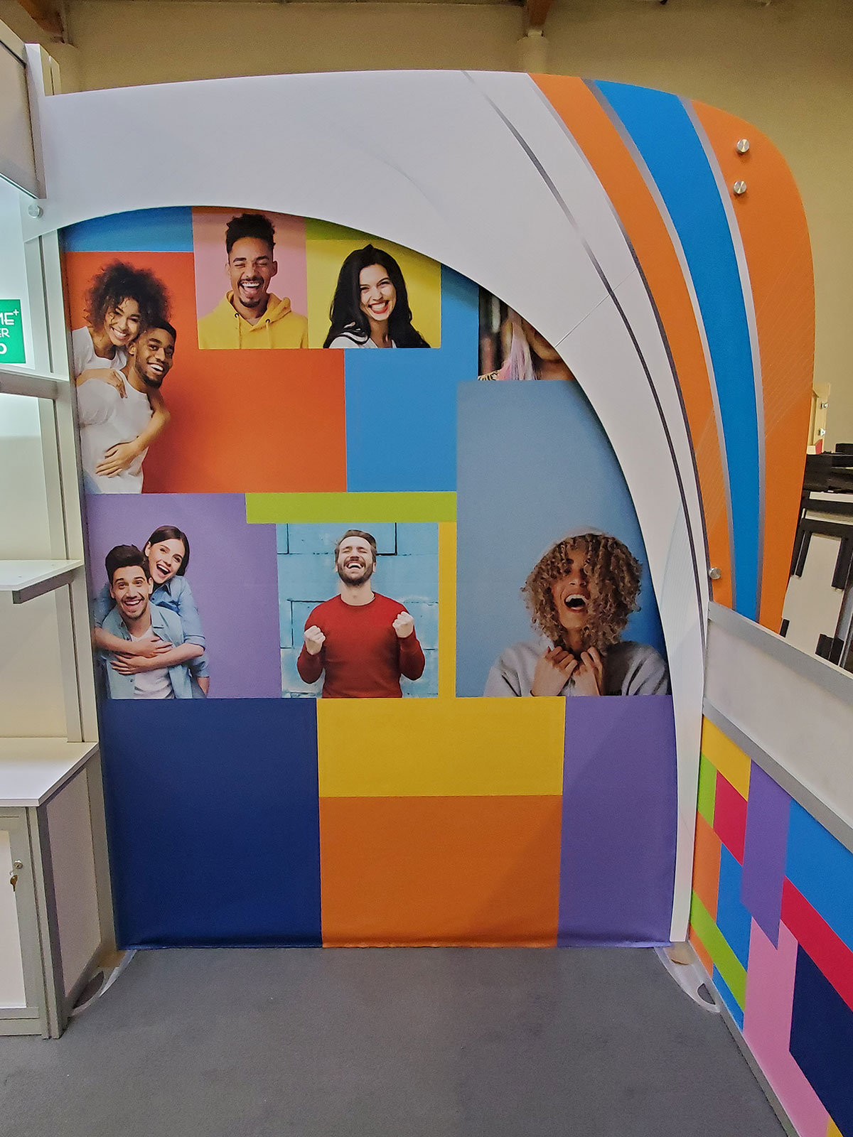 Exhibit with Tension Fabric and Direct Print Graphics, Header,