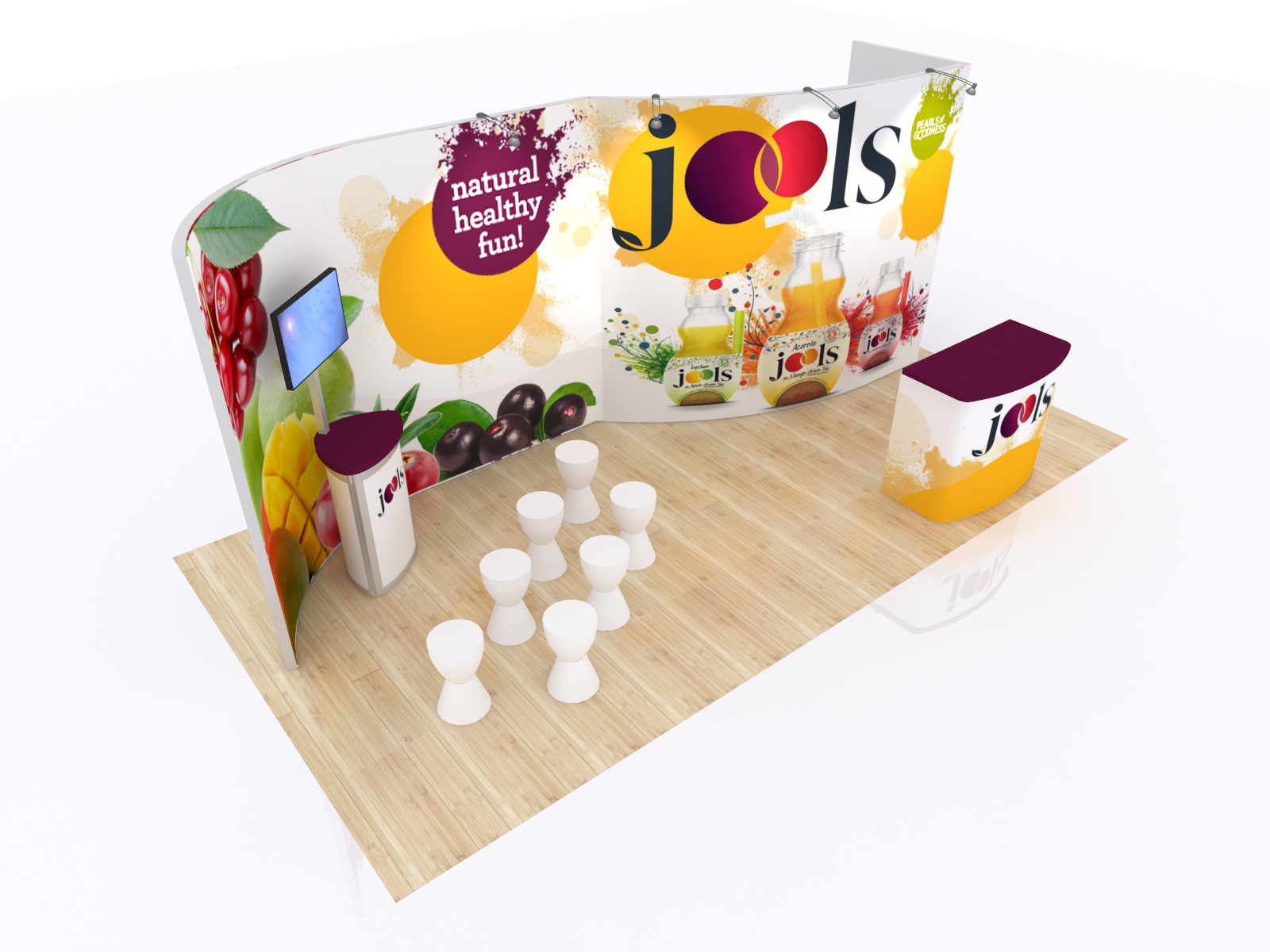 Hybrid is a relatively new category of trade show displays. Generally, hybrid displays incorporate aluminum extrusion, tension fabric, and other display components such as laminates, wood, Sintra, and other materials to create a tabletop, inline, or island exhibit.