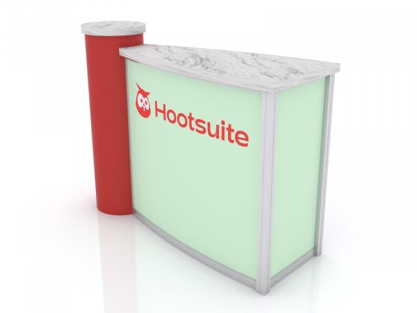 When choosing the right counter or pedestal for your display, consider how you will use it on the show floor. Do you need locking storage? Will the counter or pedestal hold a lead retrieval machine, laptop, or other electrical device? If so, you will need wire management. That may be as simple as ordering a grommet for the counter. If you are planning to use a tablet computer, consider the tablet insert option for the counter top. This option is practical, attractive, and secure for many tablets, such as an iPad.