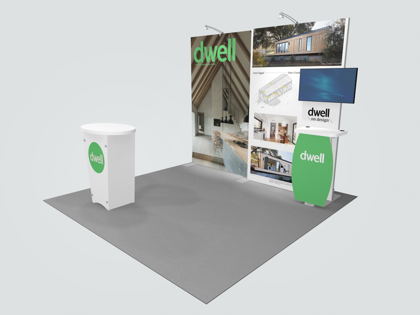 Personalize your Symphony Display with attractive counters, workstations, floating graphics, iPad clamshells, and monitor mounts. The lightweight aluminum frames are engineered for SEG dye-sublimated fabric graphics for a seamless, wrinkle-free look. Add floating graphics for additional visual layering and branding.