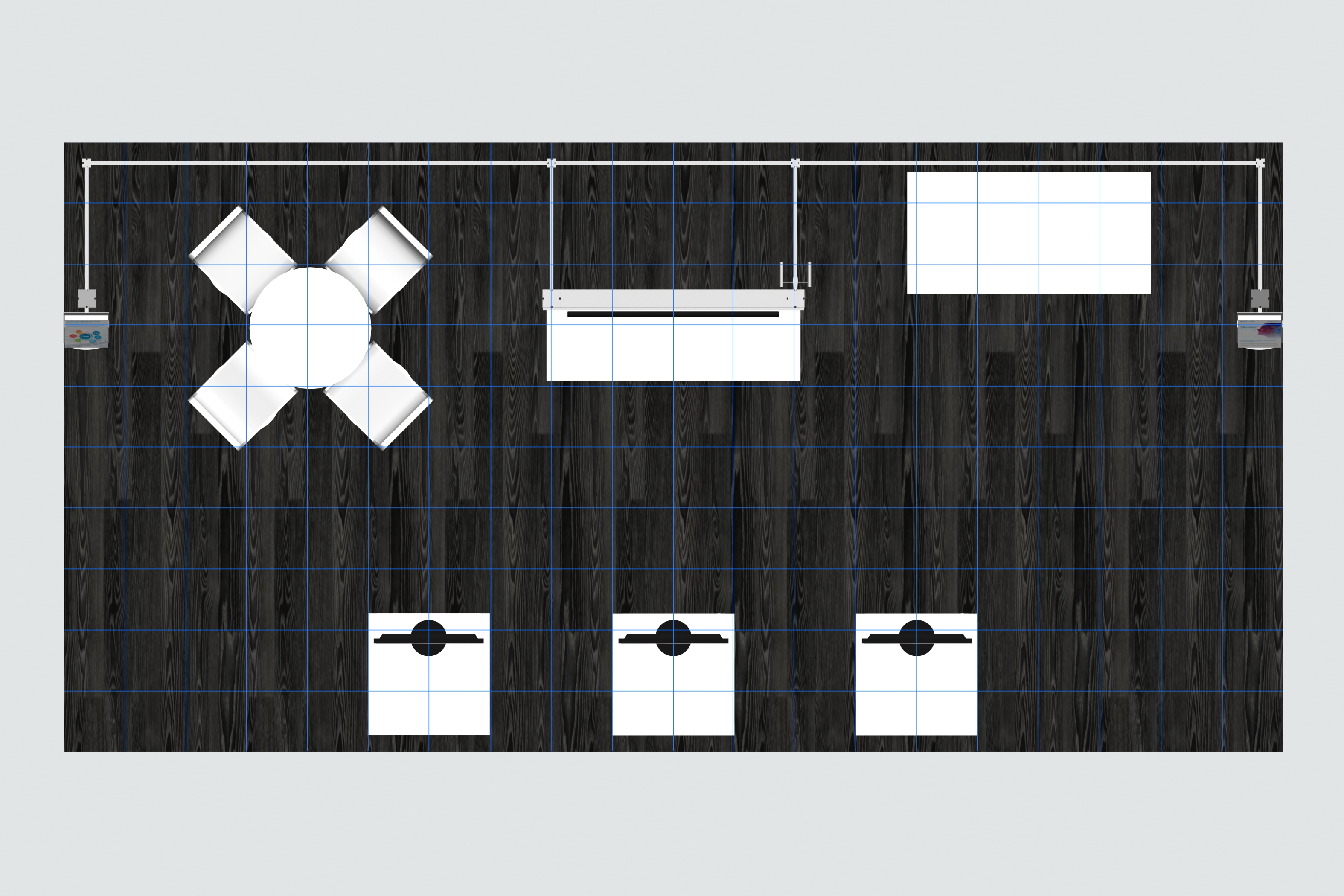 Engaging prospects at a trade show is important.. and you only have a limit time. The RE-2101/VK-4024 gives you all the tools to attract and engage attendees. Start with the three pedestals with monitors and programmable lighting. Those are not only impossible to ignore but also ideal for demoing your products and services with multiple prospects. There's an informal seating area for longer, more in depth conversations or negotiations, surrounded by large format graphics and a large monitor. Storage? There's locking storage in the pedestals and in the backwall counter along with a walk-in locking closet. Finally, the RE-2101/VK-4024 even includes (6) convenient literature trays.