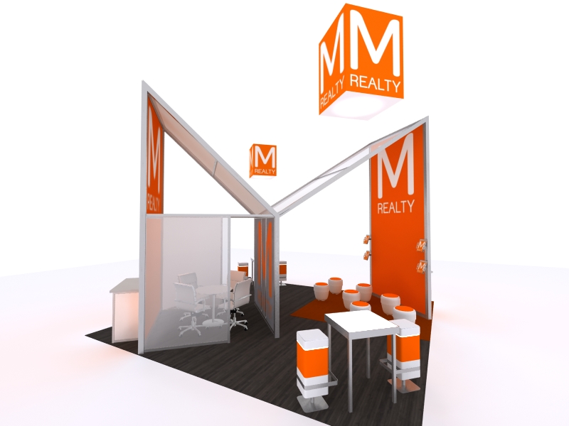 On its most basic level, a trade show display is a billboard featuring your product or service. The "M" series supercharges this idea by designing a graphic billboard with tension fabric, monitors, presentation areas, and a conference room. As your company grows and your tradeshow requirements expand, the "M" series makes it easy to evolve from a 10 ft. to a 20 ft. to an island display because the structure and the graphics are designed to be interchangeable. Add iPad kiosks or counters for additional flexibility and storage.
