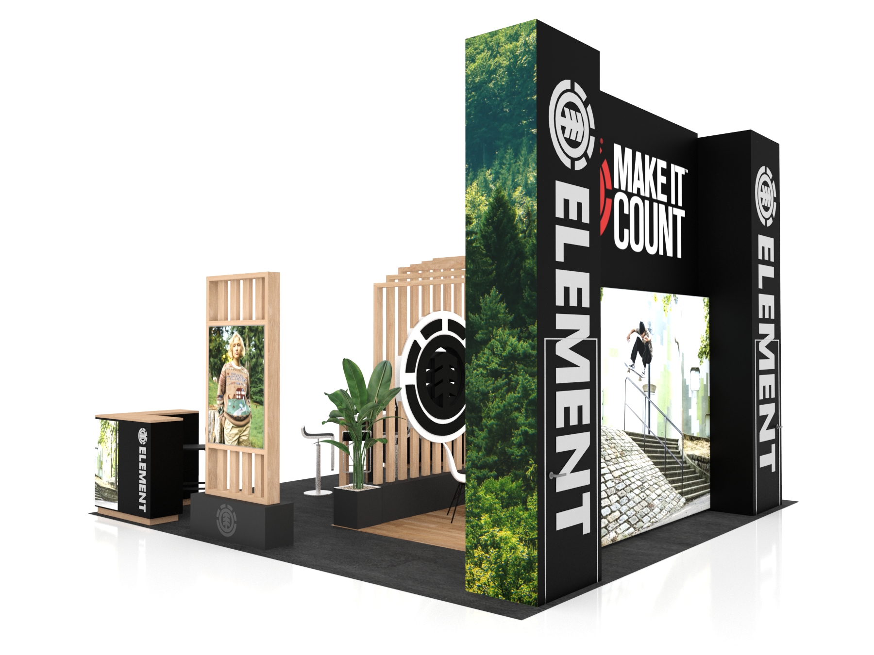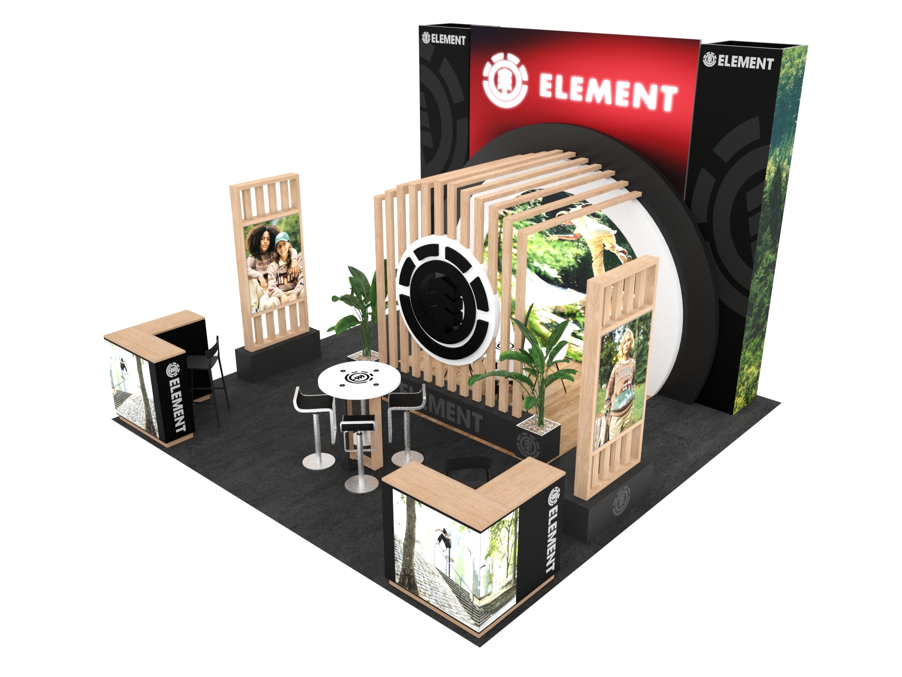 These custom modular designs combine large format fabric graphics with lightboxes and LED video tiles. Light and movement are guaranteed to attract attendees to any booth. The 20 x 20 versions come with either an accordion-shaped wall or two closet towers with locking storage. The 20 x 30 version blends both of these options together.